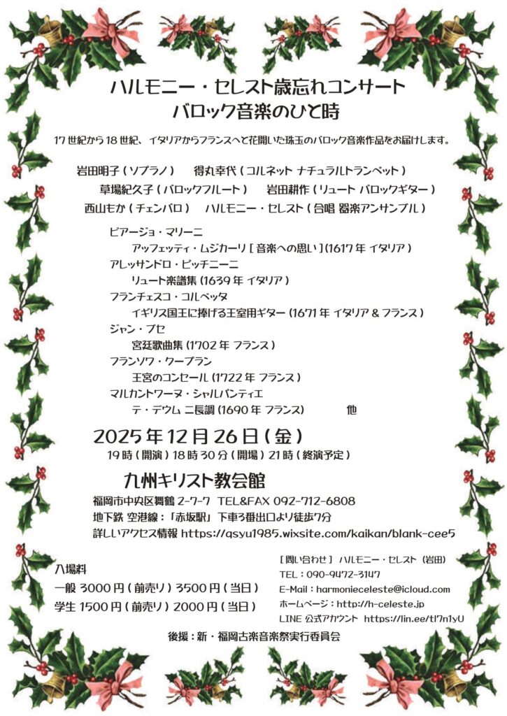 ♬後援コンサート情報♬ 「ハルモニー・セレスト歳忘れコンサート」